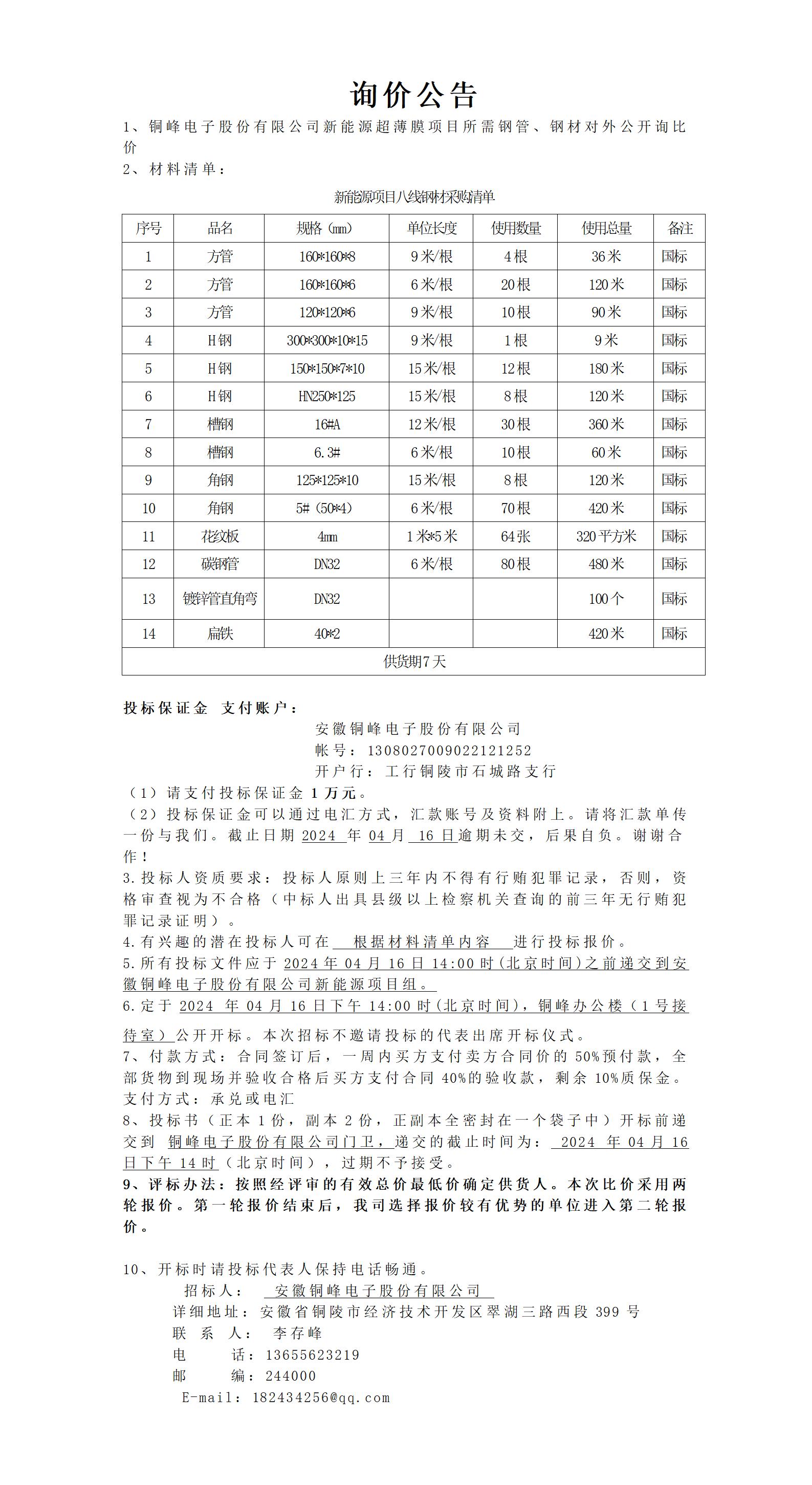 太阳成城集团tyc234cc古天乐股份有限公司新项目八线钢材询价公告