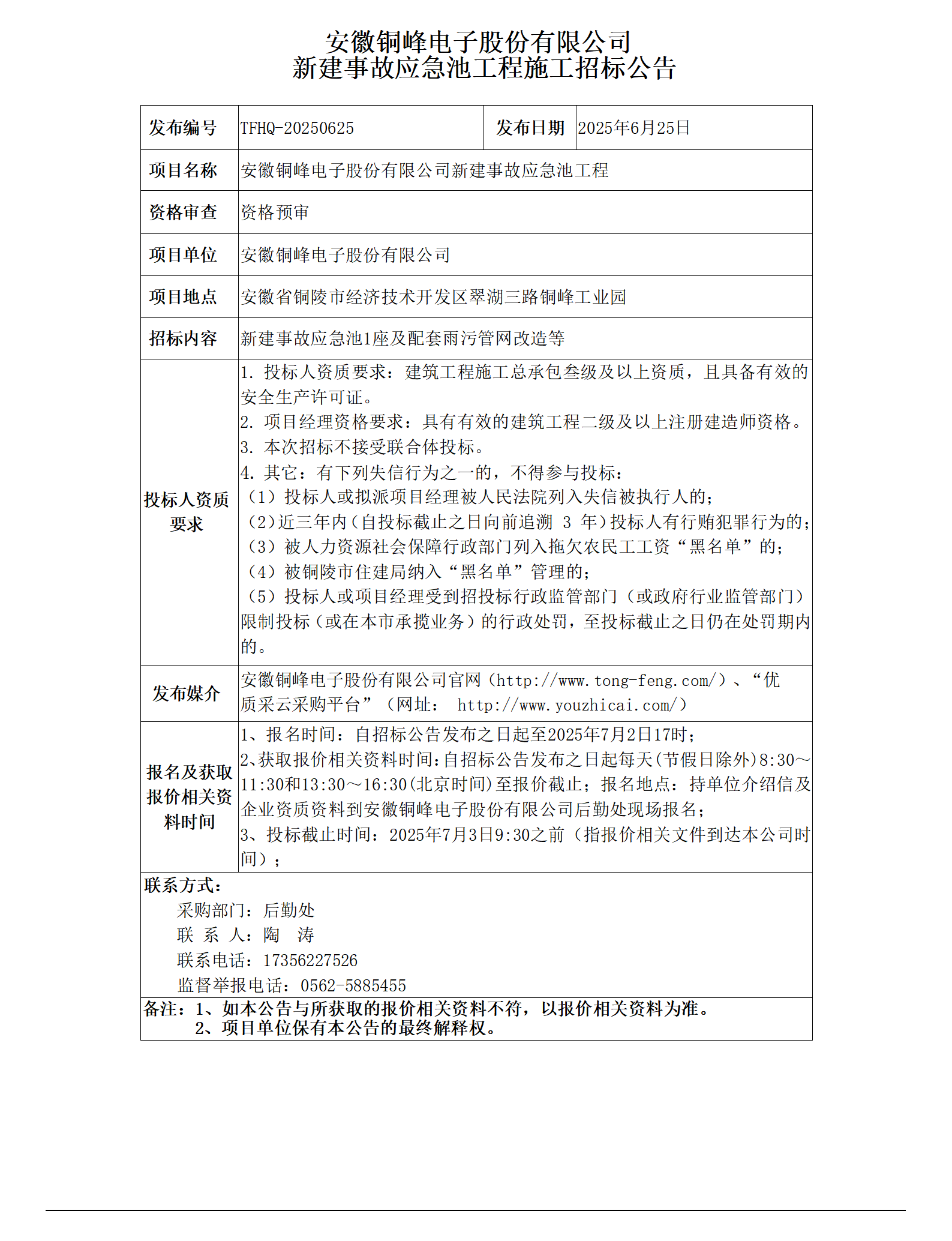 安徽峰成电子有限公司设备采购公告_01