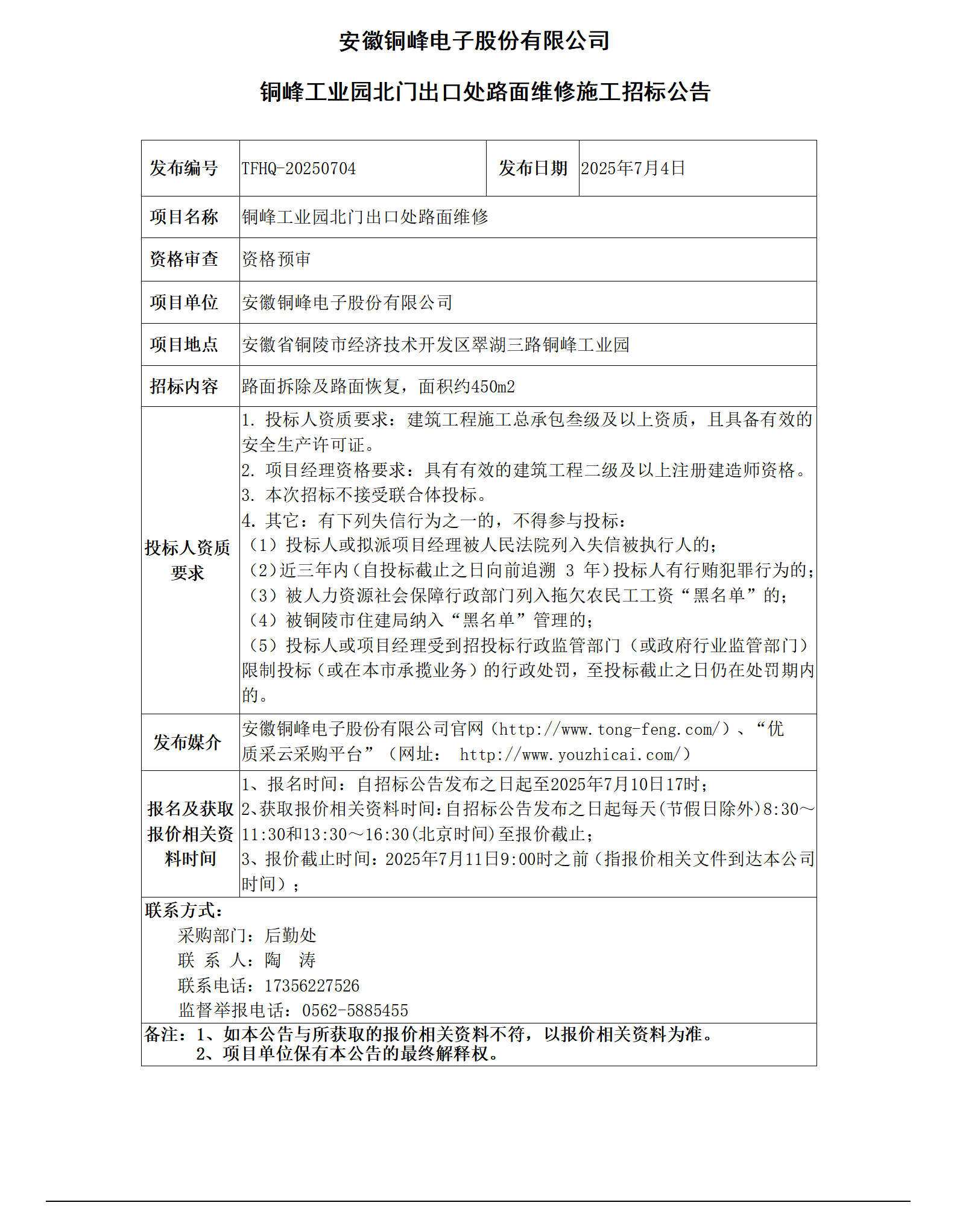 太阳成城集团tyc234cc古天乐 (铜峰工业园北门出口处路面维修招标公告)_01