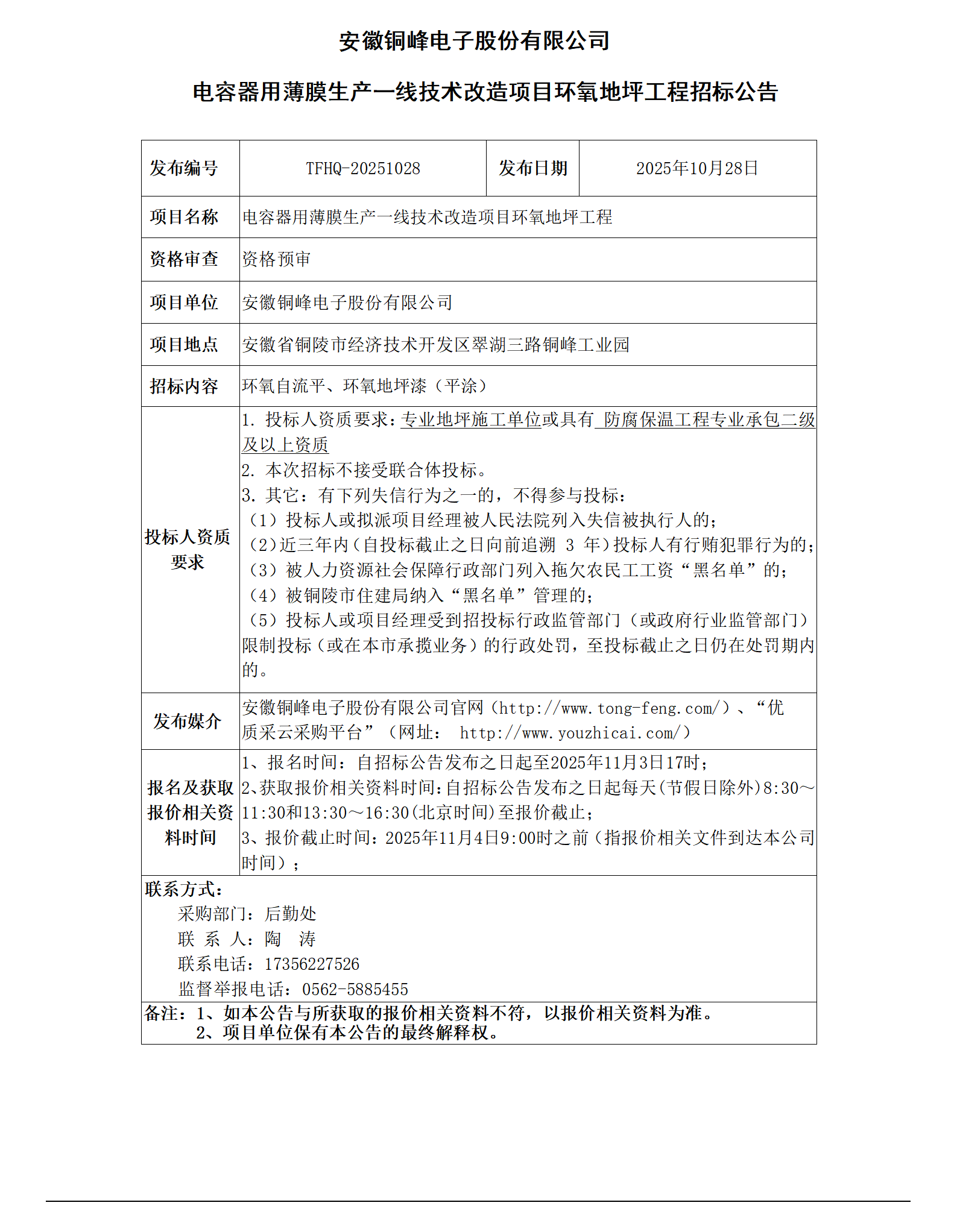 太阳成城集团tyc234cc古天乐 (电容器用薄膜生产一线技术改造项目环氧地坪工程 招标公告)_01