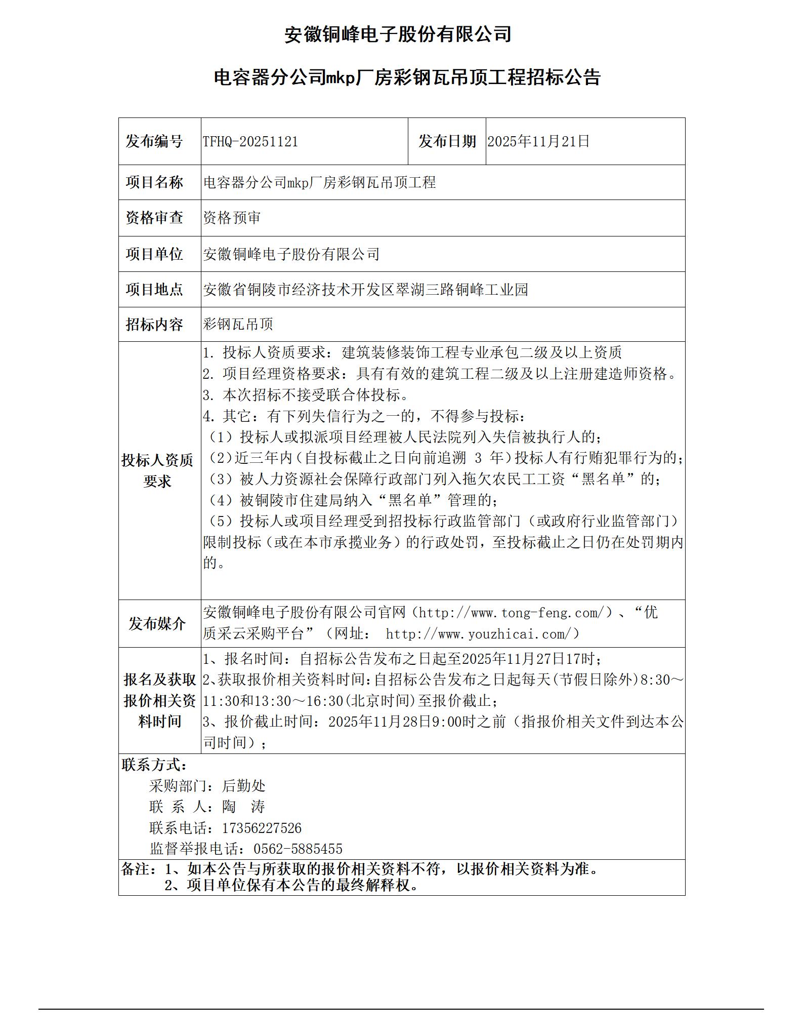 太阳成城集团tyc234cc古天乐 (电容器分公司mkp厂房彩钢瓦吊顶工程 招标公告)_01