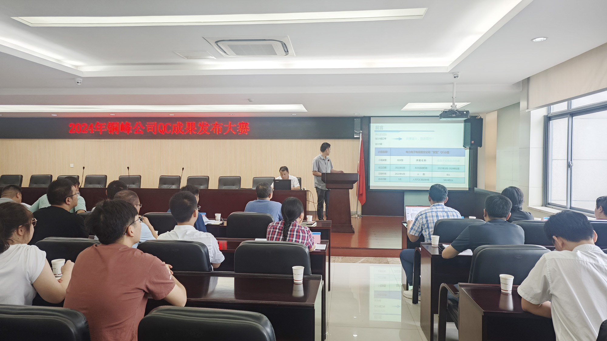 近日,公司在办公楼二楼职教室成功举办2023年度QC成果发布赛。本次发布赛旨在激发职工的积极性和创造性,改进质量、降低消耗,提升经济效益,共有来自公司各生产单位的15个QC小组积极报名参加。