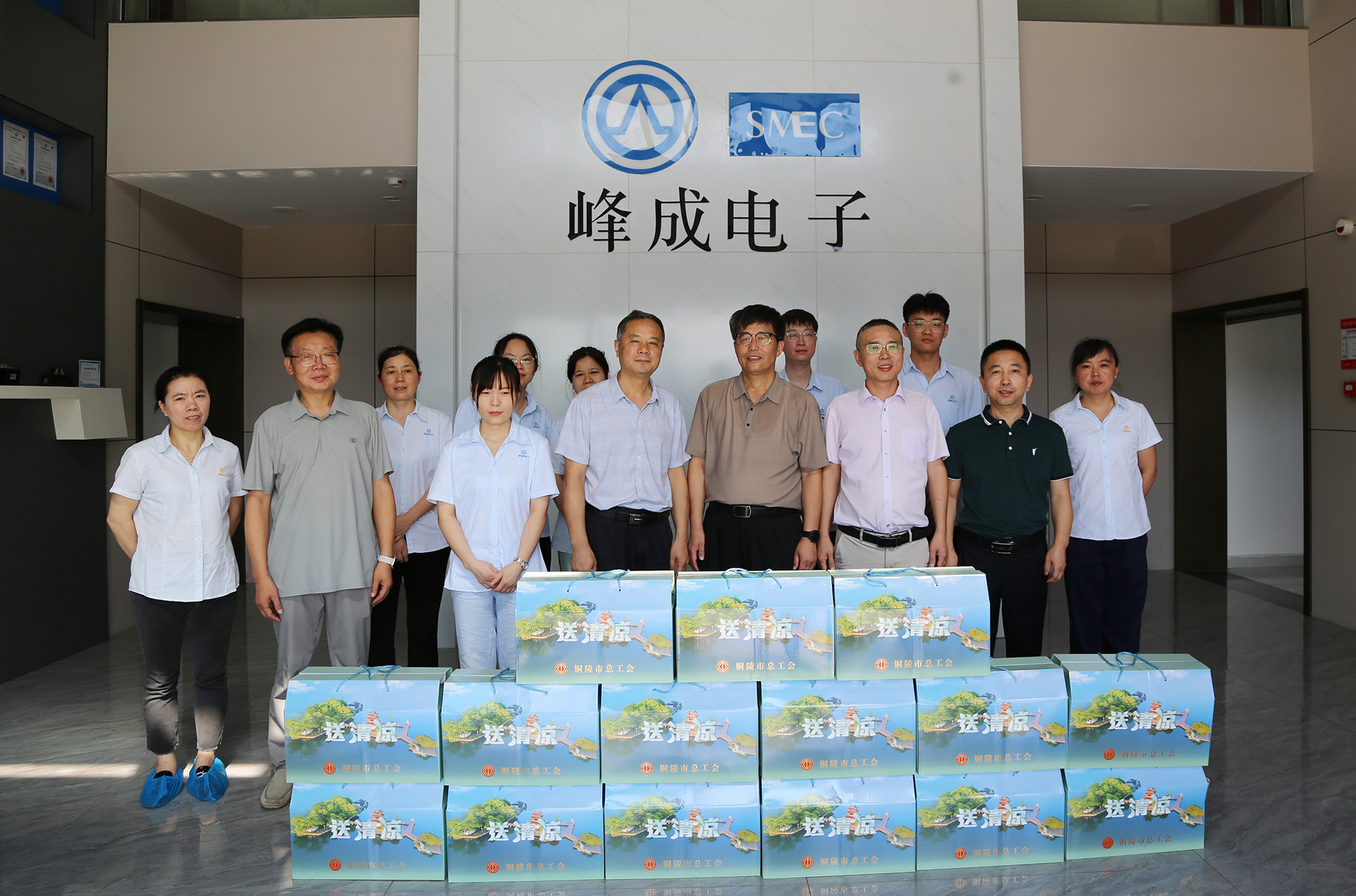 7月25日上午,市总工会副主席朱永宏一行来公司开展“送清凉”高温慰问活动。公司副总经理、财务总监郭传红,党委副书记、工会主席潘世宇,总经理助理潘焱尧等陪同。