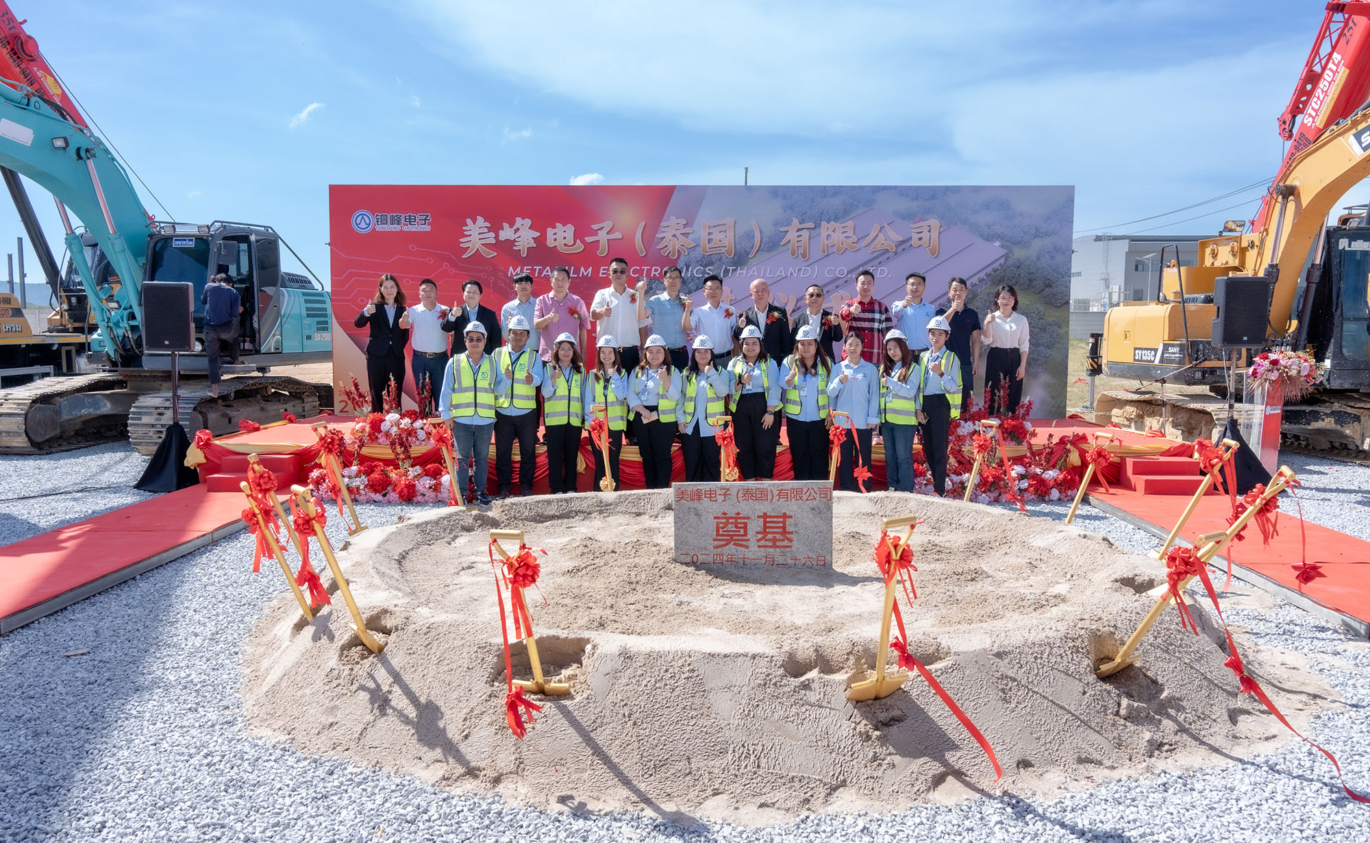 美峰电子(泰国)有限公司的开工奠基,标志着项目建设正式进入新阶段。下一步,公司将科学组织,加快项目建设进度,确保项目按期建成达产,早日发挥项目效益,努力为国际市场提供高质量的产品与服务,并为泰国当地的经济发展、创造就业及地区可持续发展贡献力量。