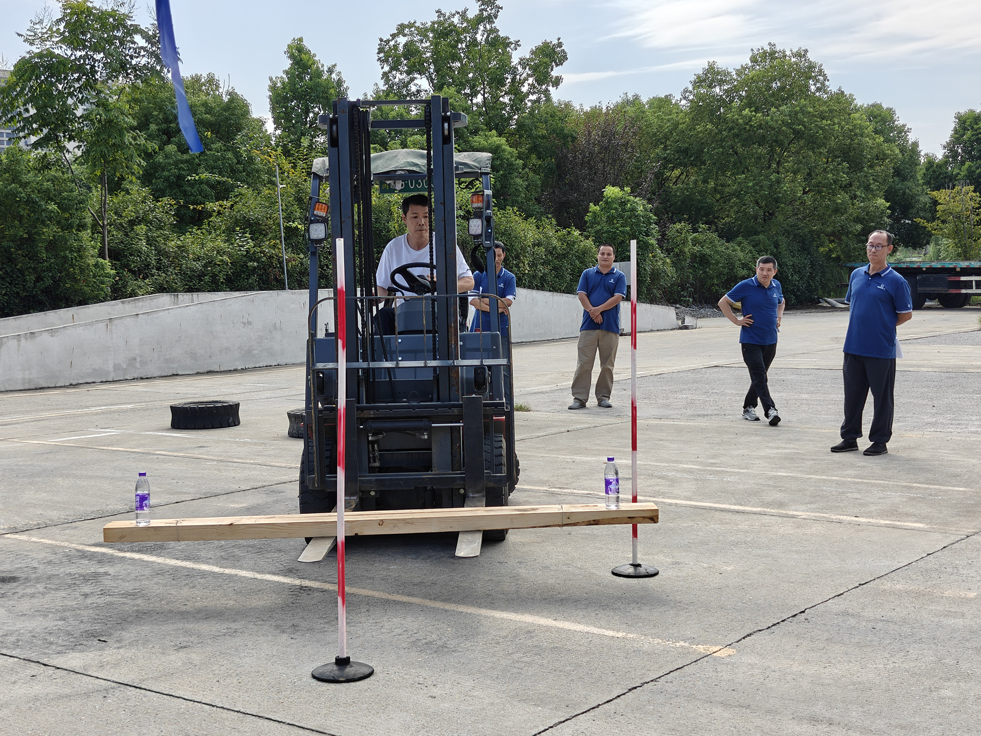 叉车技能比武侧重于选手的操控熟练性与心理素质。项目设置紧密贴合实际作业场景,要求选手在限定时间内完成转向往返、托盘精准移库码放等动作,并在绕障碍物操作过程中确保托盘上矿泉水瓶保持稳定,不得掉落。竞赛不仅要求速度,更注重操作的平稳性与准确性,充分体现出高标准的作业要求。